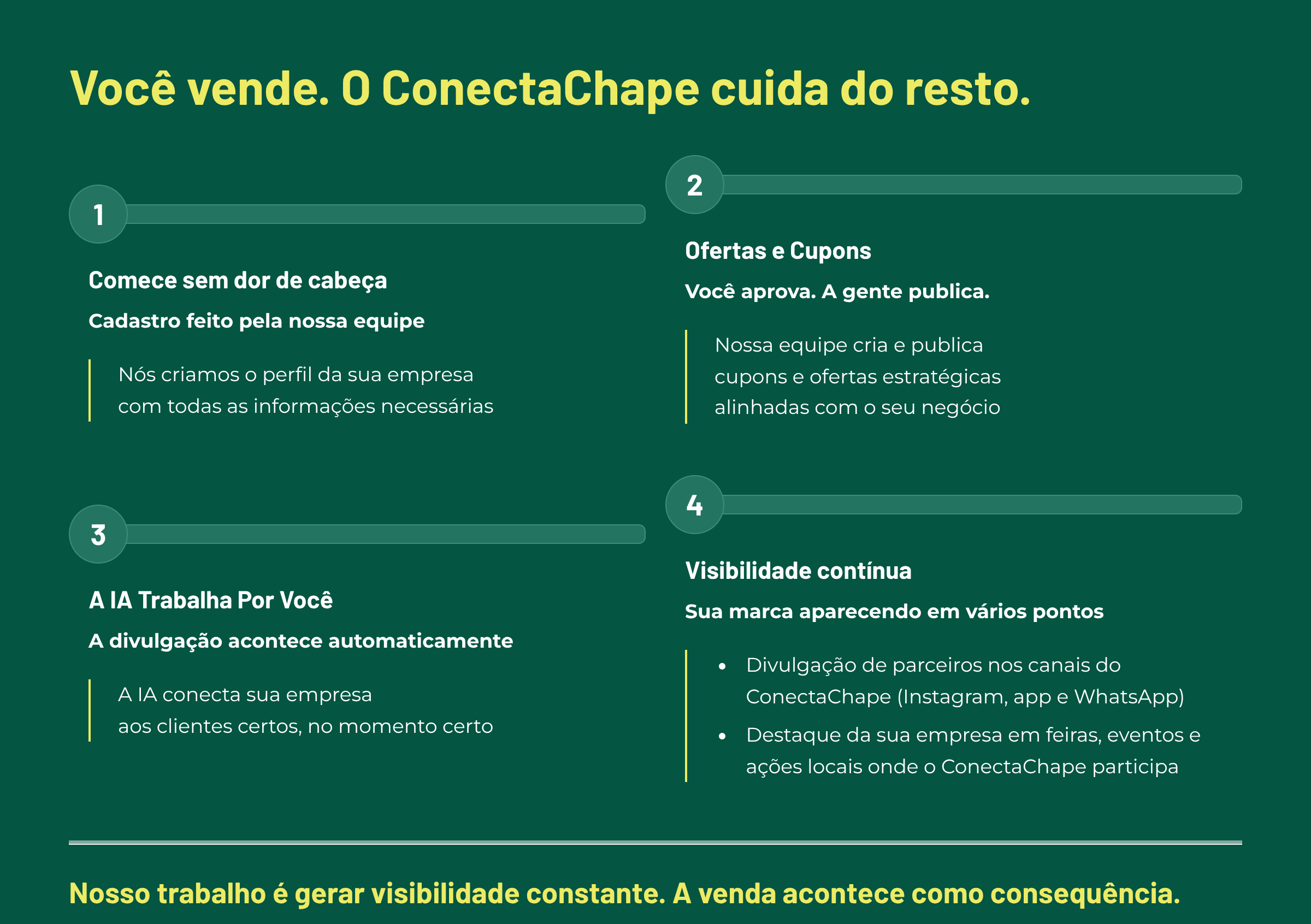 Empreendedores que desejam aparecer no ConectaChape de forma simples, marcando presença online para não perder oportunidades de vendas.
