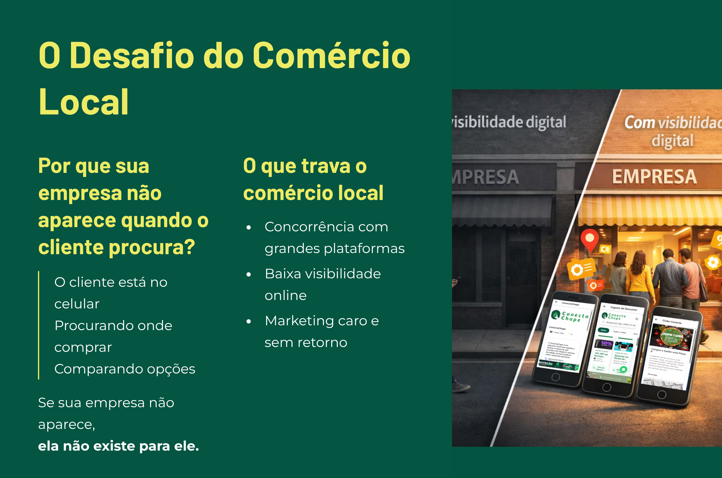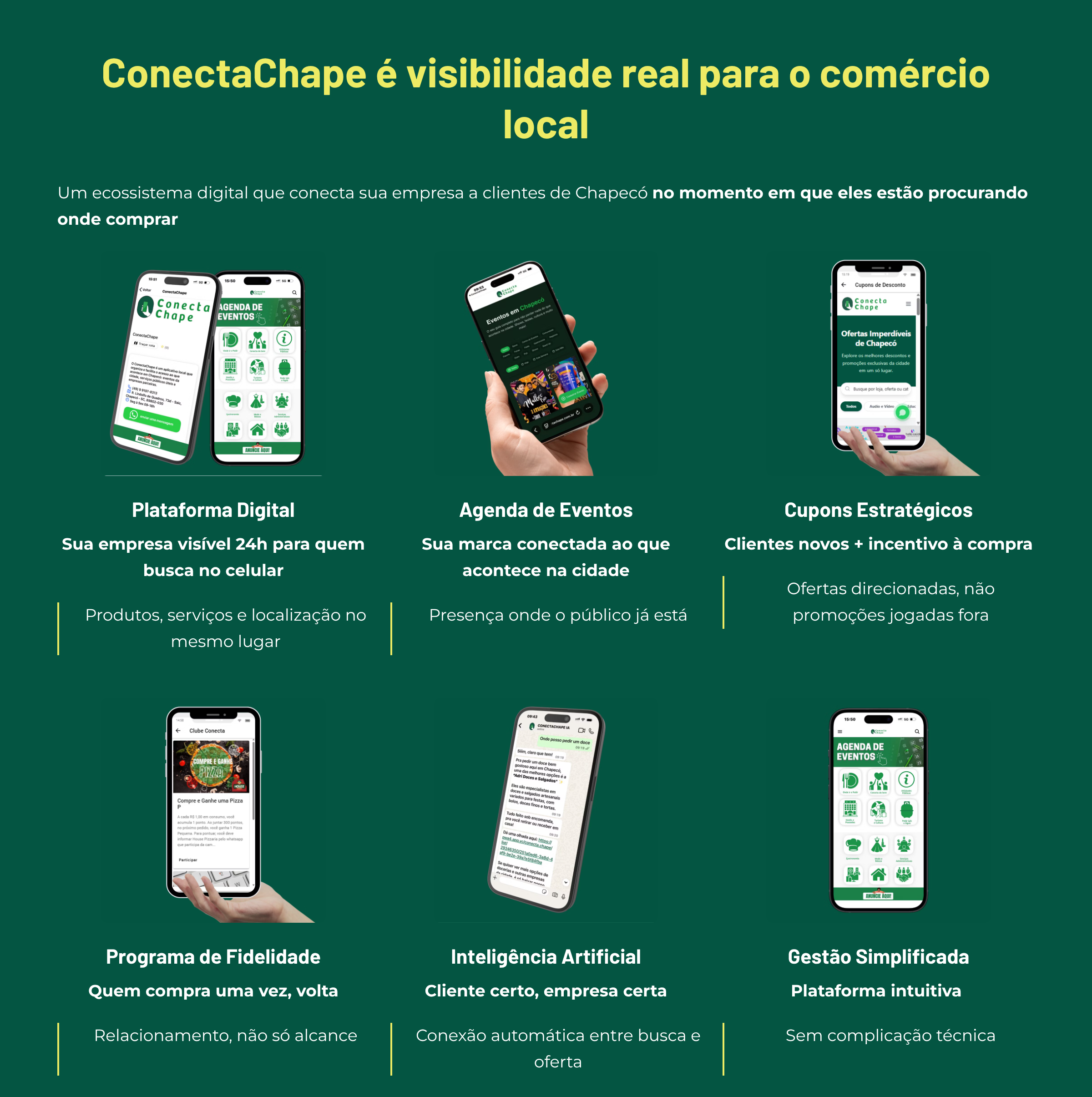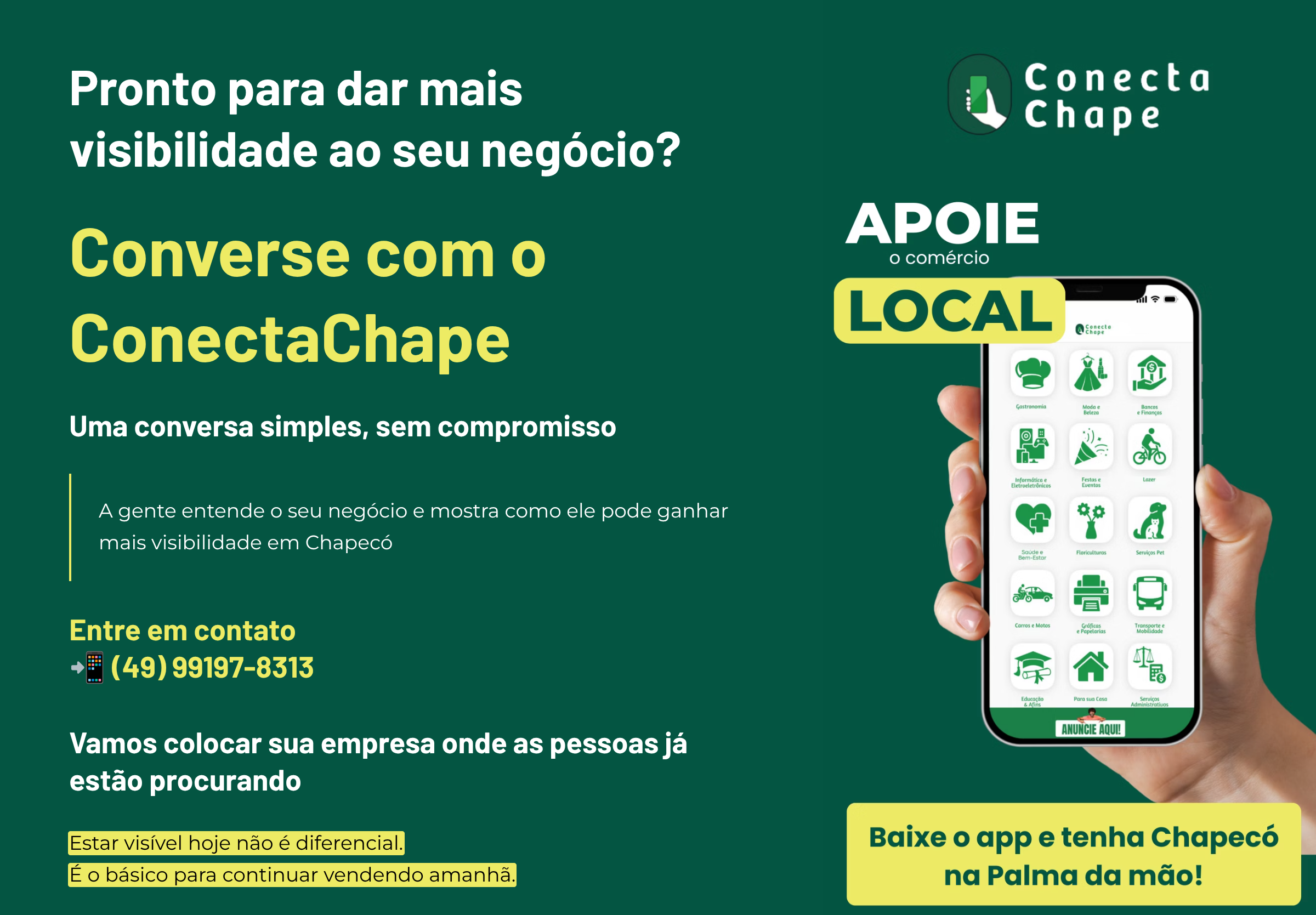 Garanta presença digital e aumente suas vendas com o ConectaChape, o app que conecta comércios, serviços e clientes em Chapecó e região.