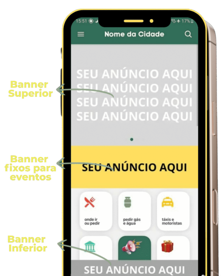 Garanta um dos espaços no nosso banner rotativo na entrada do app e aumente sua visibilidade para todos que acessam app ConectaChape. Seja uma das poucas empresas a ter este destaque estratégico, elevando seu engajamento e alcance.