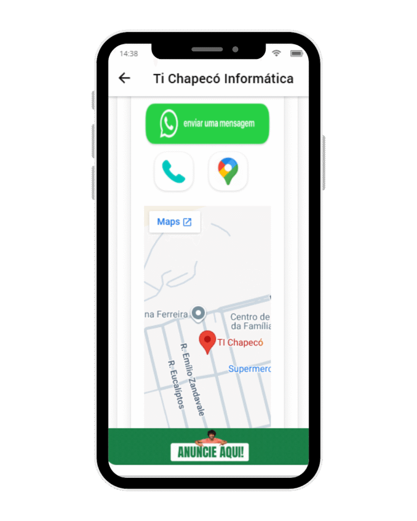 R: Para anunciar seu estabelecimento no App ConectaChape, entre em contato conosco através do nosso whatsapp ou você pode anunciar pelas funções acima. Nossa equipe estará pronta para orientá-lo sobre os planos disponíveis e como proceder.